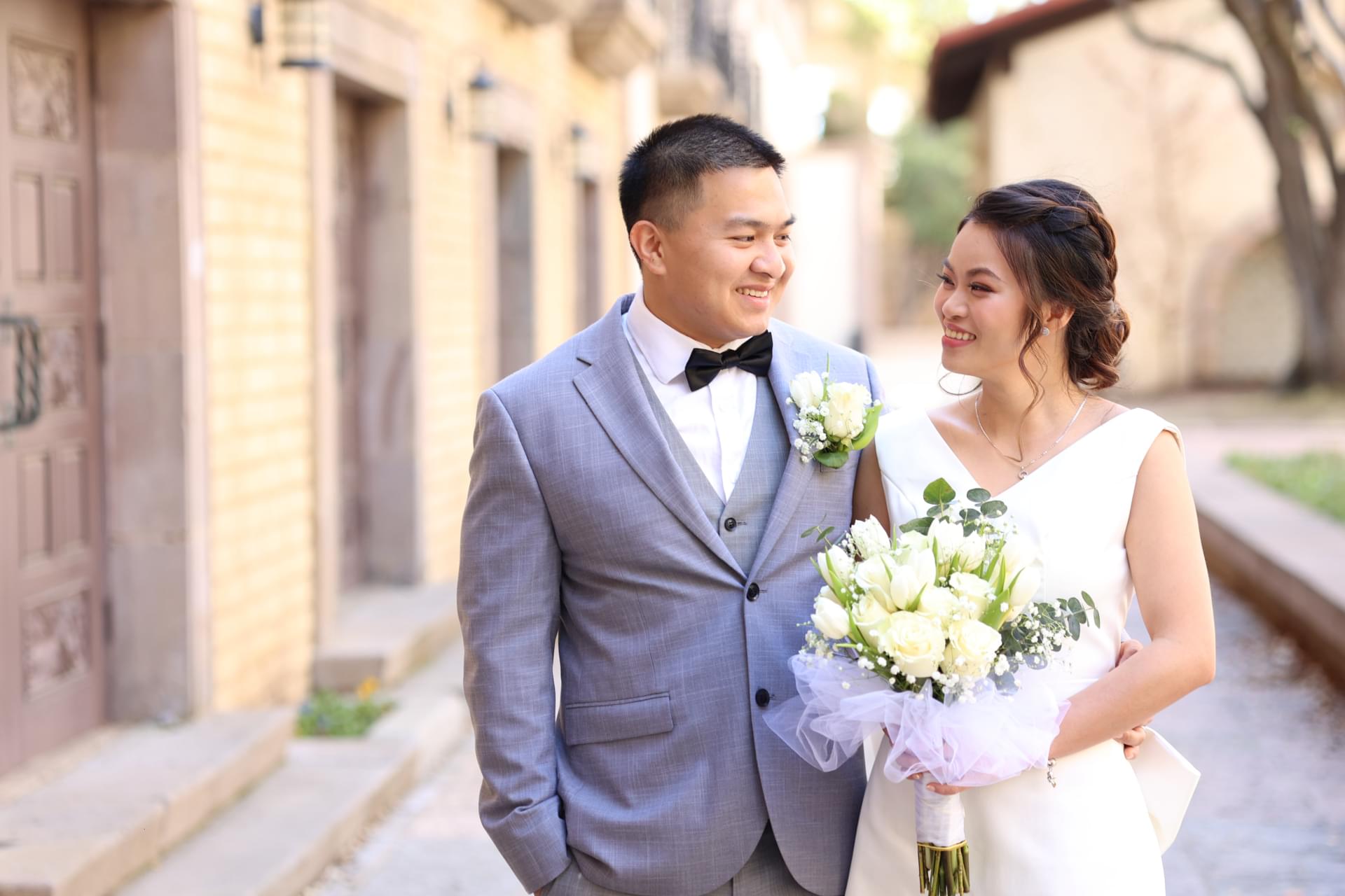 We know each other when Cam be friend with Mia ‘s older sister and her cousin. Cam came over to her house a lot after work. Few months later, they work together in Lisa’s Chicken and start to have more conversations about their hobbies, lifestyle. By some miracle, they were drawn to each other. And whatever comes will come, they officially dating on the beautiful day of June 2018. Spend time together and go to church together on Sundays, continue to be by each other's side, share the joys and sorrows, even the challenges for their love. But they made it through. After all, thanks to God's grace, they realized this is their other half and decided to be together for the rest of their lives. Cam proposed to Mia on the afternoon of March 2022. She did not hesitate to say: “Yes”. After a year of waiting, they will become One on July 1, 2023 in the presence of God and the presence of both families.